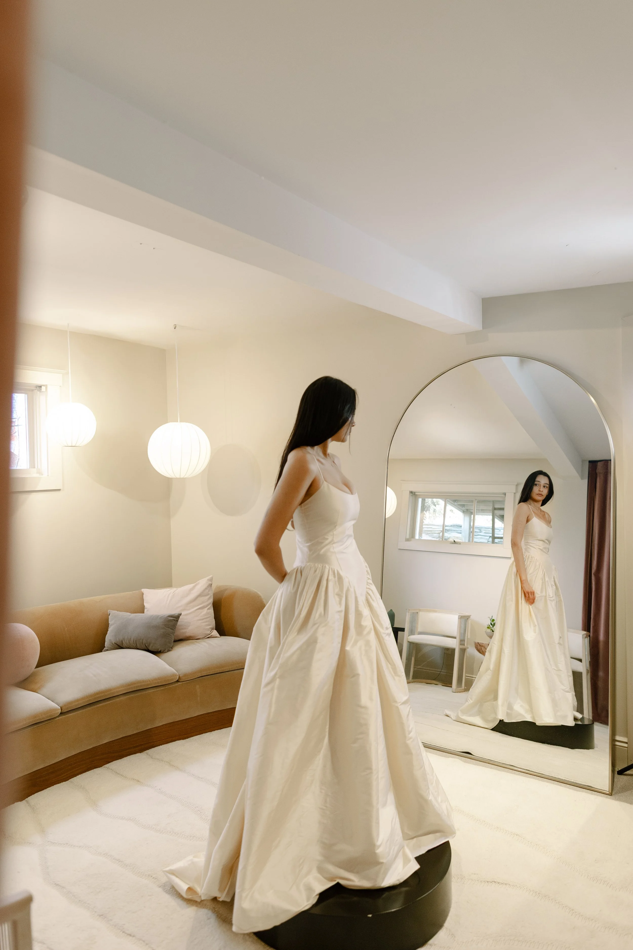 During your 90 minute bridal appointment you'll work with a dedicated stylist to find your dream dress in our chic and private studio. We’ll start by getting to know you over a drink, and walk through our collection together helping you find the dress of your dreams.